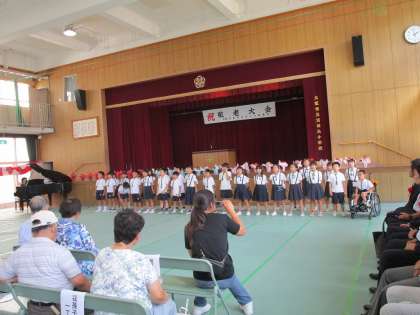 本校講堂にて苅田北ほほえみ協議会主催の敬老大会が催されました。