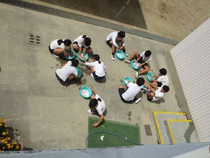 6年1組は家庭科の授業で洗濯実習を行いました。