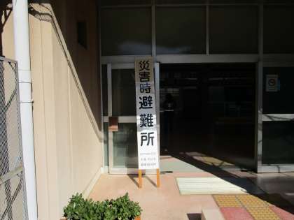 写真下は 我孫子中学校での避難所開設の看板です。