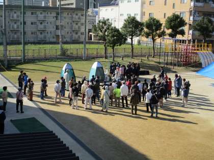 苅田1丁目町会の避難所開設訓練と苅田北地域本部の開設訓練が同時に行われました。