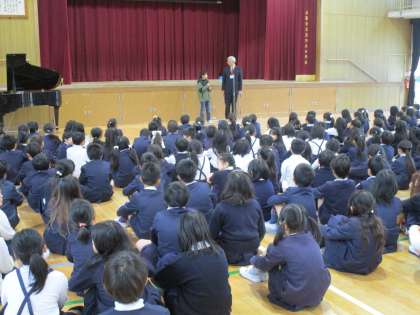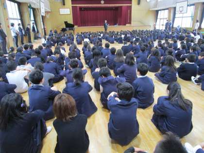 始業式では、3学期はとても短いですが、がんばる気持ちと思いやる心をもって過ごしてほしいと、校長先生がお話されました。転入生があったので、紹介してもらいました。