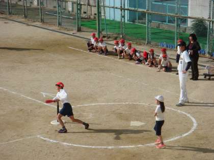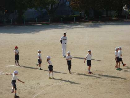 11月4日(火)オリックスの学校訪問がありました。5、6時間目にTボールを教えて頂きました。元気に楽しく学習することができました。