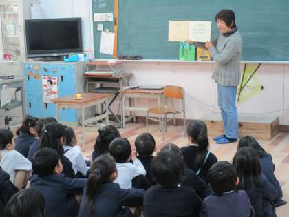 今日も、住吉絵本の会の方に来ていただき、おはなし会をしていただきました。