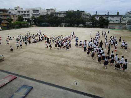 避難訓練をしました。火災が発生したという想定で、運動場に避難しました。避難する時は「おさない」「はしらない」「しゃべらない」に気をつけて集合しました。