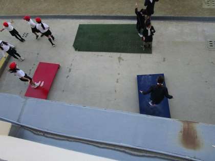みんな、喜んで縄跳びをここで楽しんでいます。順番もしっかり守っていますよ。