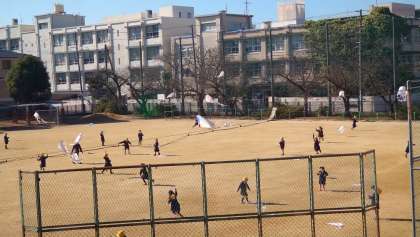 先週、1年生の生活科の学習で凧揚げをしました。