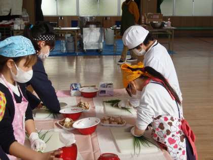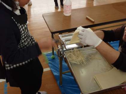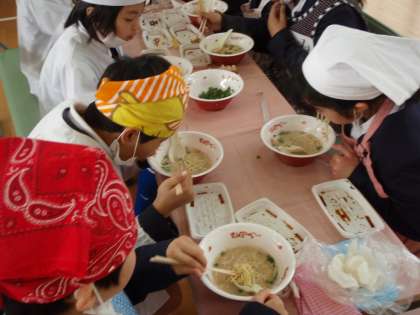 餃子の後は、チャーシューやネギを切ったり、麺を作ったりして「とんこつラーメン」を食べました。