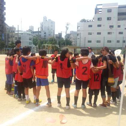 大阪市スポーツ交流会のサッカー予選が今日、天王寺小学校で行われ、ナント!苅田北小学校が優勝を勝ち取りました。2週間という大変短い練習期間でしたが、毎日暑い中、頑張った成果を存分に発揮することができました。