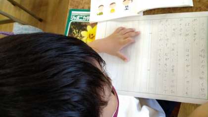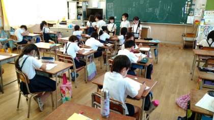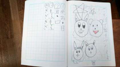 「ことばで絵をつたえよう」の学習です。絵の描き方をことばにして文章に書きます。説明の順序を考えながら、絵の形や位置などを伝えることができるように考えていました。