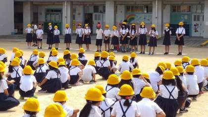 校長先生からは、今日は夏至で昼間が一番長い日であること、今日からプール水泳が始まること、登下校時には安全のために黄帽子をかぶること、についてのお話がありました。