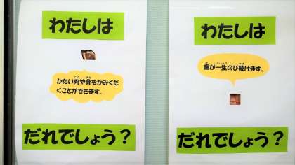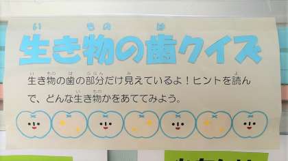 6月4日〜10日は「歯と口の健康週間」でした。それにちなんで、保健室前の掲示板には、生き物の歯についてのクイズが出されてます。子どもたちは何問答えられたのでしょう?