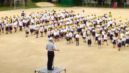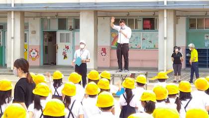 1つ目は、もうすぐ1学期が終わるので、1学期を振り返りまとめをしましょうというお話です。2つ目は、住吉区内で車に乗った知らない人から子どもが声を掛けられるという事があったので、みなさんも気をつけましょうというお話です。3つ目は、C-NETのクリス先生が来られるのは今日が最後になるというお話でした。今まで英語を教えて頂いたくりすにみんなでGood byをしました。
