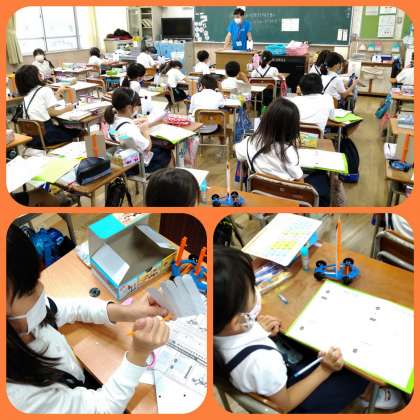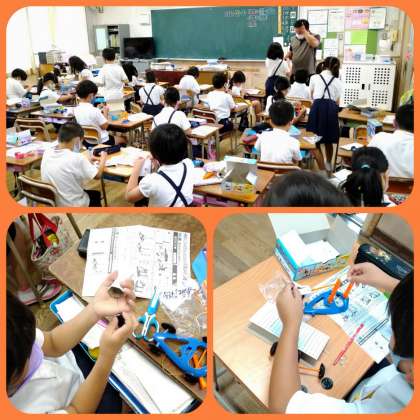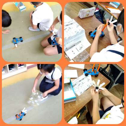 「風やゴムのはたらき」の単元で、風やゴムの力は物を動かすことができることを学習しました。特に、風やゴムの力の大きさを変えると物が動く様子も変わることを理解して、実際に試していました。