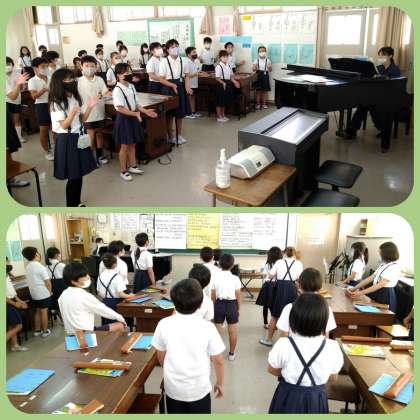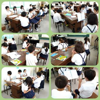 合唱、リズム打ち、リコーダー演奏等を練習しています。