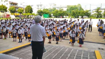 1学期の終業式を行いました。コロナ禍のため、学習時間が変わったり行事が縮小されたりした1学期でしたが、子どもたちは元気で安全に過ごしていました。引き続き夏休みも健康・安全に気をつけて生活しましょうと校長先生からお話がありました。