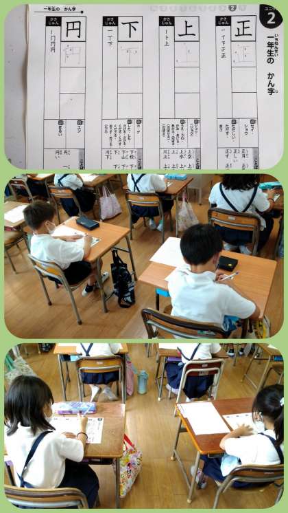 写真は1年生が反復学習をしている様子です。今日はユニット2「正」「上」「下」「円」の漢字を練習しました。
