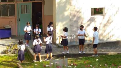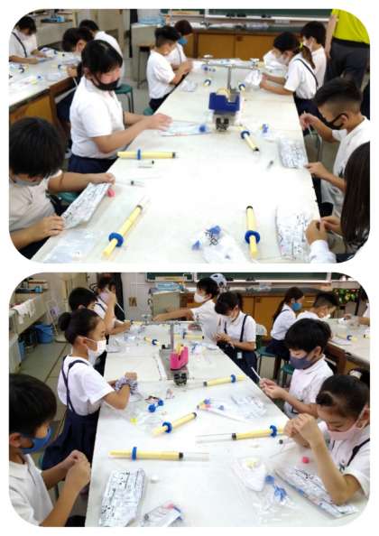 「とじこめた空気や水」の単元で、空気てっぽうや水でっぽうを試しながら楽しく学習しています。今日は、空気てっぽうでは玉が飛ぶのに水でっぽうでは玉が飛ばないことを実験で確かめて、その理由を考えました。その後、ストローロケットを作って楽しみました。