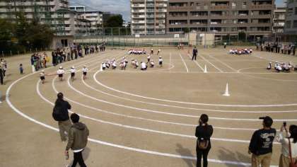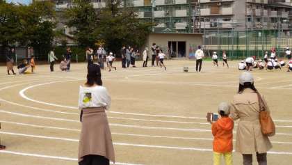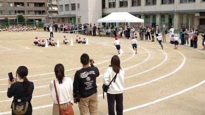 3年生は団体競技「台風のように走れ!!台風の目!!」と個人走「はしれ!あきらめるな!3年生」をしました。