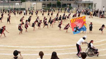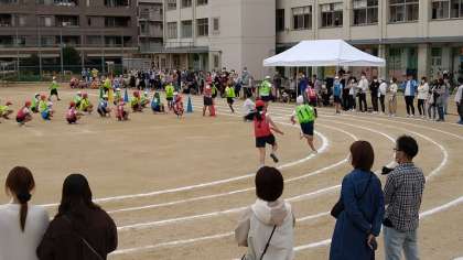 6年生はリレー「ラスト RUN!! バトンをつなげ」と団体演技「苅北ソーラン 〜最後の舞〜」をしました。