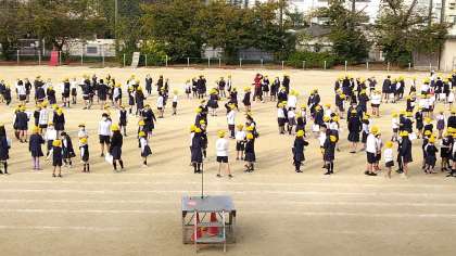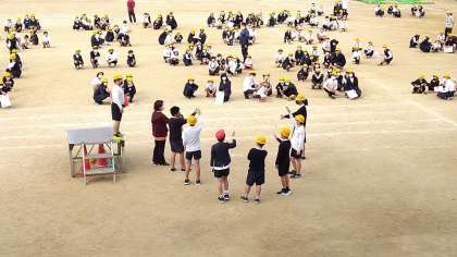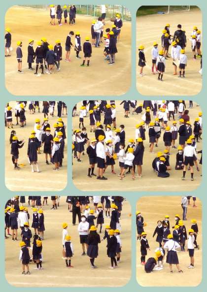 今日の集会は「王様ゲーム」です。縦割り班でジャンケンをして勝った人が王様になります。王様は、みんなに指令を出し、みんなは王様の指令に従います。ただし、人の嫌がることは指令にできません。初めは集会委員がお手本をしました。どんな指令を出そうか、楽しみながら考えていました。