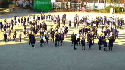 今日の集会は「イントロクイズ」でした。1問目は1年生が、2問目は2年生がというように、学年で順番に答えていきました。曲は「パプリカ」「USA」「マリーゴールド」など、子どもたちもよく知っている曲でした。