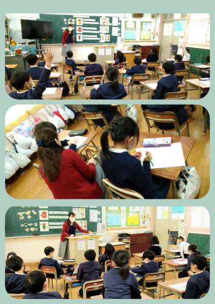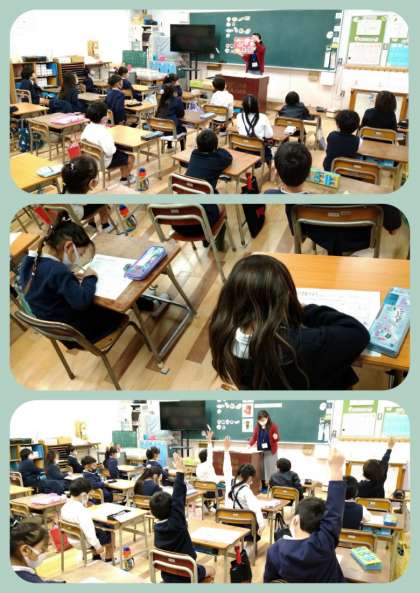 「すききらいしないでたべよう」について学習をしました。紙芝居に出てくる食べ物を「き」「あか」「みどり」の3つグループに分けていきながら、それぞれの栄養素のはたらきを教えていただきました。身近な食材がどのグループに入るかを考えながら分けていきました。子どもたちは好き嫌いをせずに何でも食べようという気持ちになっていました。