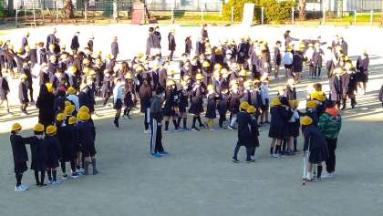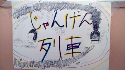 ジャンケン列車をしました。ジャンケンをして、負けた人は勝った人の後ろにつきます。先頭の人は、次にジャンケンができる人を探していきます。こうしてつながっていくというゲームです。最後まで先頭だった子どもにみんなで拍手をしました。