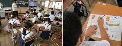 C-NETのラファエル先生に外国語を教えてもらっているのは、5・6年生だけでなく3・4年生も教えてもらっています。3・4年生は隔週で、今日は3年生でした。「How many?」の学習で、数字の言い方の練習をしました。数字を英語で言いながら数字カードを何秒で並び替えられるか競争しました。また、じゃんけんを英語でして、勝ち負けを表に書きました。