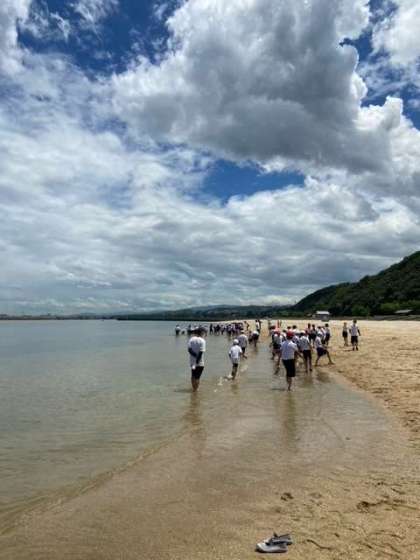開舎式を済ませ、浜辺遊びをしています。