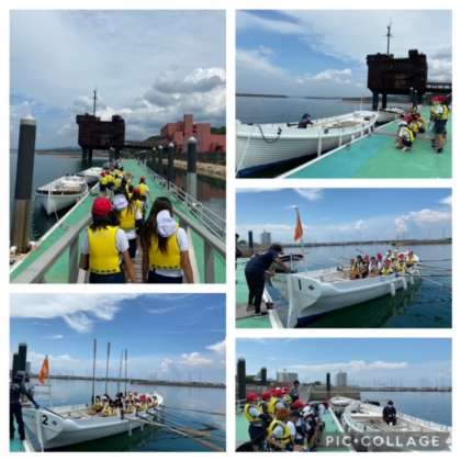 出発直後は櫂の動きもぎこちなく、バラバラで大丈夫かなと思いましたが、戻ってくるころには息が合ってスムーズでした。