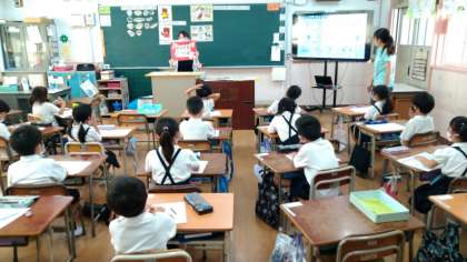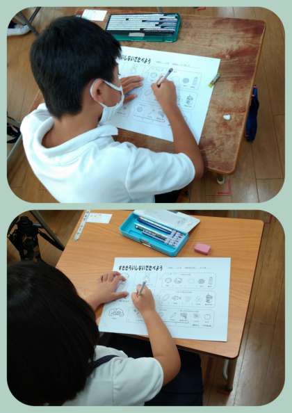 栄養教諭の方に来ていただいて、「すき きらい しないでたべよう」の学習をしました。はじめに、絵カードを見てパンや魚・肉などの食物の名前を当てるクイズをしました。そして、その食物には人間の体にとってどんな栄養があるのかを教えてもらいました。出てきた食物を栄養の働きによって「あか」「き」「みどり」に分けられることを学習しました。どの栄養素も人間にはとても必要なものなので、これからは好き嫌いしないで食べようという気持ちをもつことができました。