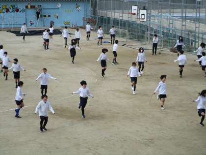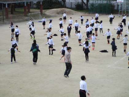 3学期のなわとび集会が始まりました。子どもたちは寒さに負けずにがんばっています。