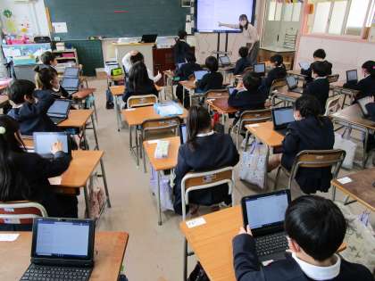 1年生も、タブレット端末の使い方に慣れてきました。電源を入れて、IDやパスワードを自分で入力しています。使用しているアプリはまだまだ少しですが、「心のてんき」はすぐに入力できるようになってきました。