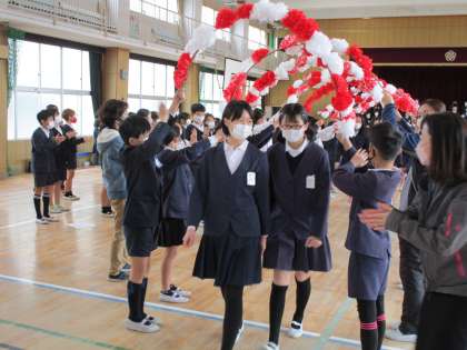 会が終わると、6年生が退場します。5年生が花のアーチを持って見送ってくれました。みんなの心に残るいい送る会でした。この会は、4・5年生の児童会のメンバーが運営してくれました。4月からは今の5年生が最高学年として下級生を引っ張ってくれることと思います。6年生は、4月から中学生です。新しい環境で、大きく成長してくれると期待しています。