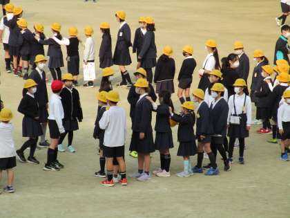 今日の集会は「じゃんけん列車」でした。集会委員会の合図で音楽が流れ、音楽が止まった時に近くにいる人とじゃんけんをします。負けた人は勝った人の後ろにつきます。列車の長さがどんどん長くなっていくのが楽しいゲームです。