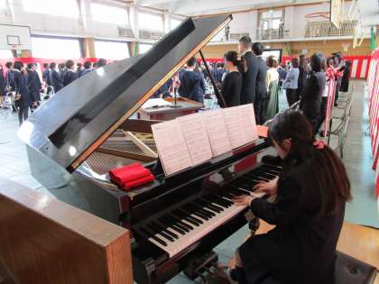 「旅立ちのことば」では、児童がピアノを弾きました。