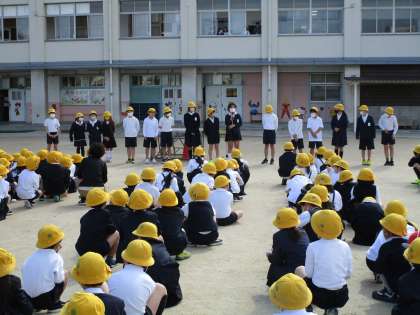 今朝の児童朝会で今年の代表委員の児童があいさつをしました。苅田北小学校をよくするためにみんなやる気いっぱいでした。