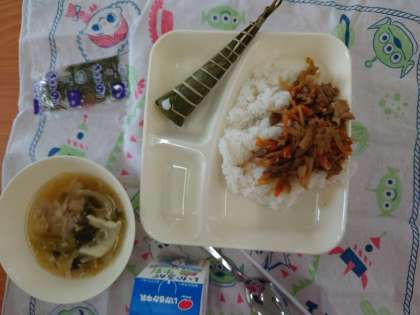 きんぴらチラシは豚肉、ごぼう、人参、グリーンピースが入っています。