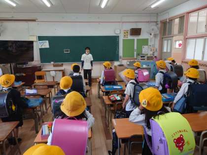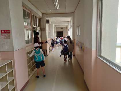 1、2年生は下校の時間です。一週間頑張りました。