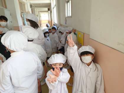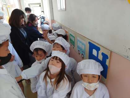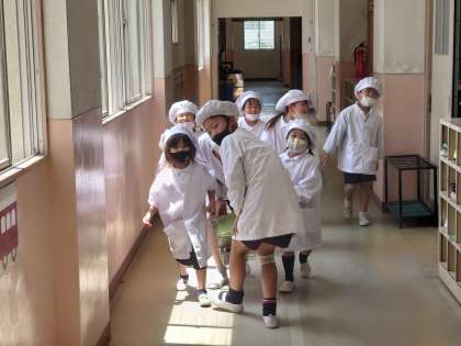 給食を運んでいます。