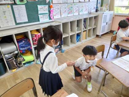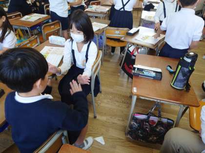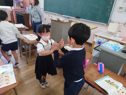 2年生が音楽をしていました。リズム遊びです。