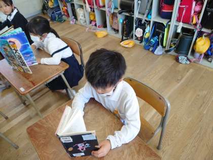 2年生が教室で読書をしていました。