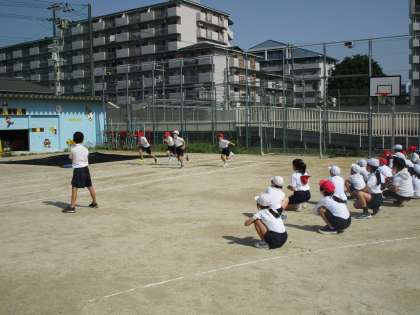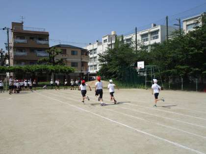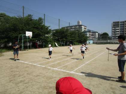 新体力テストの日が続きます。今日もまず、4年生が50m走とソフトボール投げの記録をとりました。