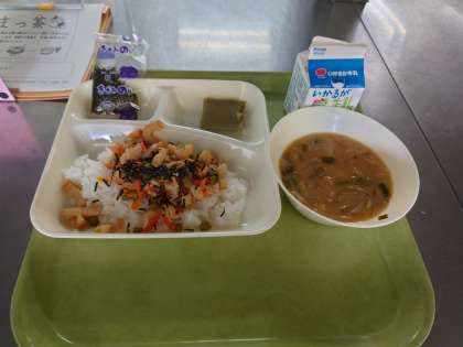 かやくご飯は、鶏肉、人参、ちくわ、さんどまめ(生)が入っています。