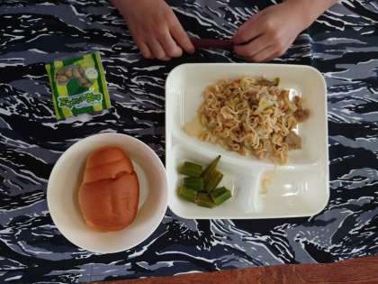 今日は焼きそばなのでパンの大きさは二分の一です。