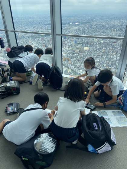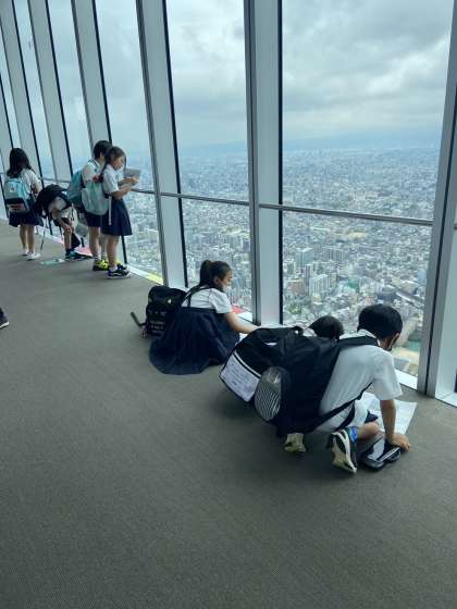 下を覗いている児童もいます。