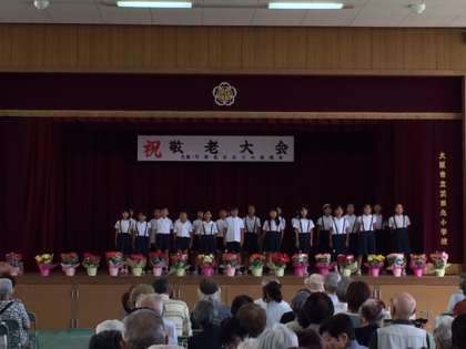 本校講堂で苅田北ほほえみ協議会の敬老会が開催されました。
