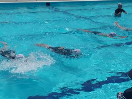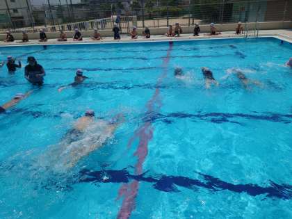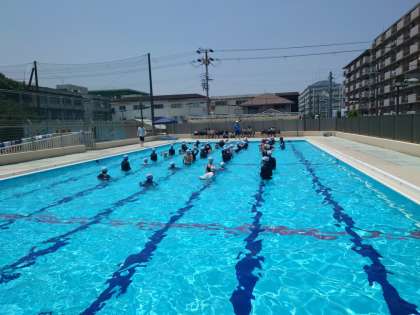 今日からプール水泳が始まりました。とても良い天気でプールの中は気持ちが良さそうです。