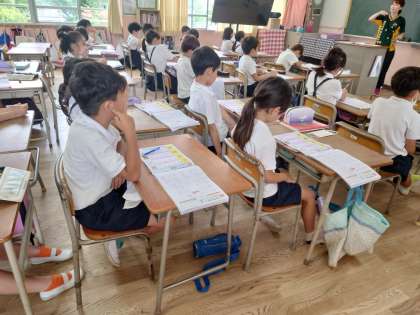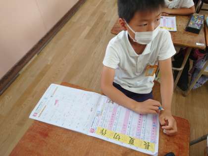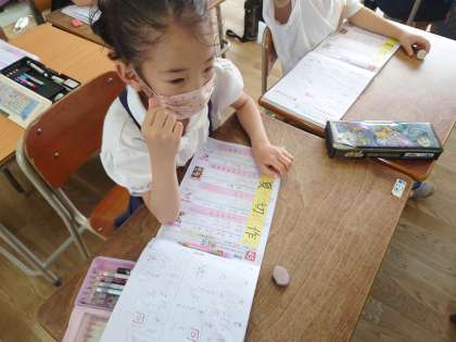 2年生お隣は漢字を書いていました。切ると夏でした。