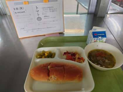 チーズ焼きは、ベーコンとじゃがいもを塩、こしょうで味付けし、その上にトマト、チーズをのせて重ね焼きにしています。